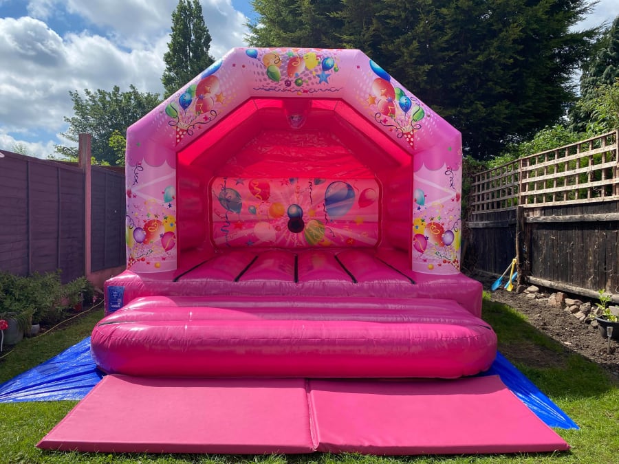 With its vibrant gloss pink pvc, this bright coloured bouncy castle will unleash thrills of excitement in your kids. The balloons and streamers on its exterior complete the look to really set the party mood!