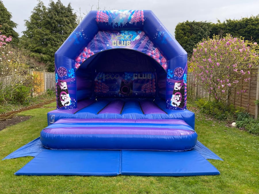 With its blue and purple colour combination topped off with disco artwork, this bouncy castle’s versatile theme appeals to both boys and girls of all ages. In addition to a shower cover to protect your children from the elements, it comes with an integrated disco light and bluetooth speaker, guaranteed to heighten the party experience.