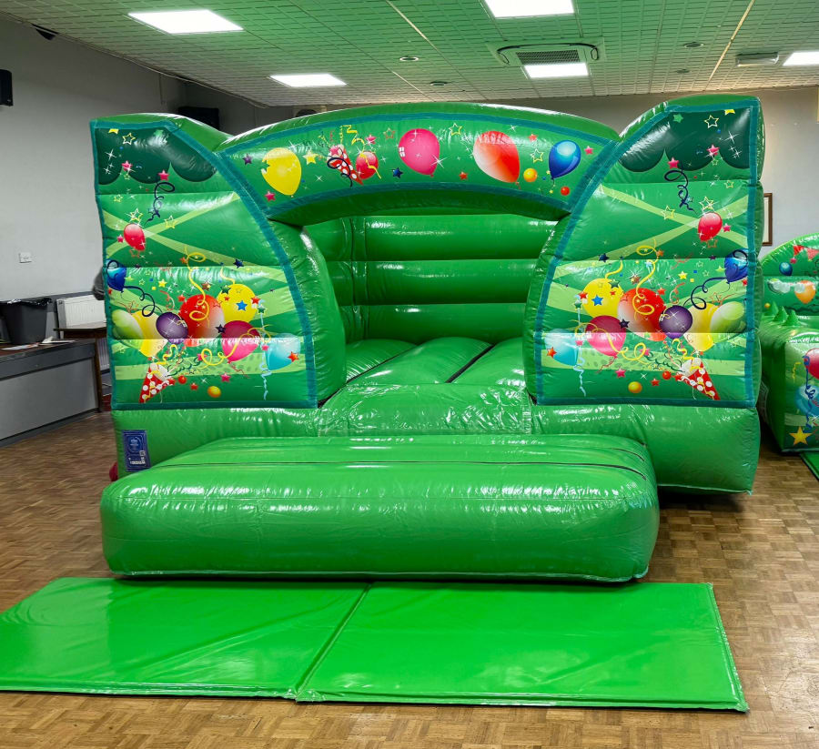 With its shiny gloss green shade and colourful balloon artwork, this low height bouncy castle is a popular choice for indoor parties in Dudley, Rowley Regis and beyond. Its spacious 13x16ft size gives your children plenty of space to have loads of fun, while the roofless design allows them to fully enjoy themselves without feeling constricted.