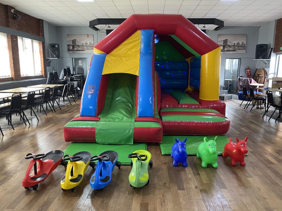 Our Multicolour Disco Slide Combi is designed to provide hours of entertainment and laughter. With its eye-catching multicoloured design, this bouncy castle is sure to be the centerpiece of any party or event. The built-in disco light adds a touch of magic, creating a dazzling atmosphere that will keep everyone grooving and bouncing to the beat. Equipped with a Bluetooth speaker, you can easily connect your favorite playlist and turn the bouncy castle into a dance floor. Let the music fill the air as you and your guests enjoy the ultimate bouncing experience.