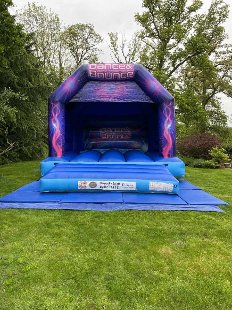 Our adult castle is the ultimate fun piece of equipment for kids and big kids alike! With a striking electric blue colour and pink wavy streaks, this large 13ft high disco bouncy castle is guaranteed to turn heads. It comes with a darkened interior with integrated bluetooth speaker and lights to create an authentic disco effect and it is perfect for both indoor use within venues and outdoors hires on grass.
