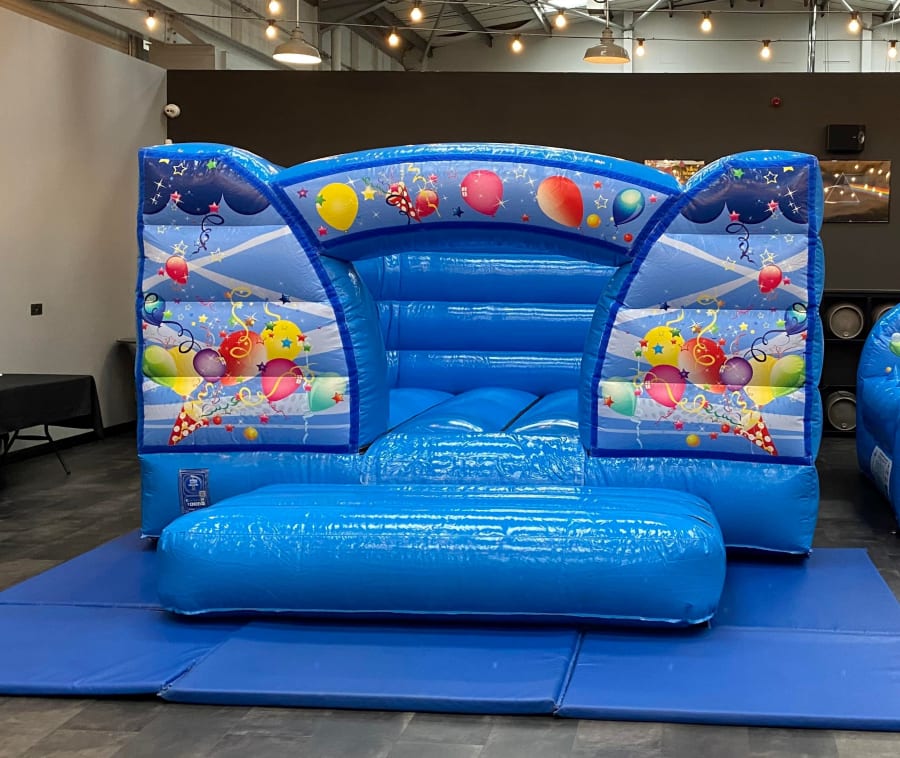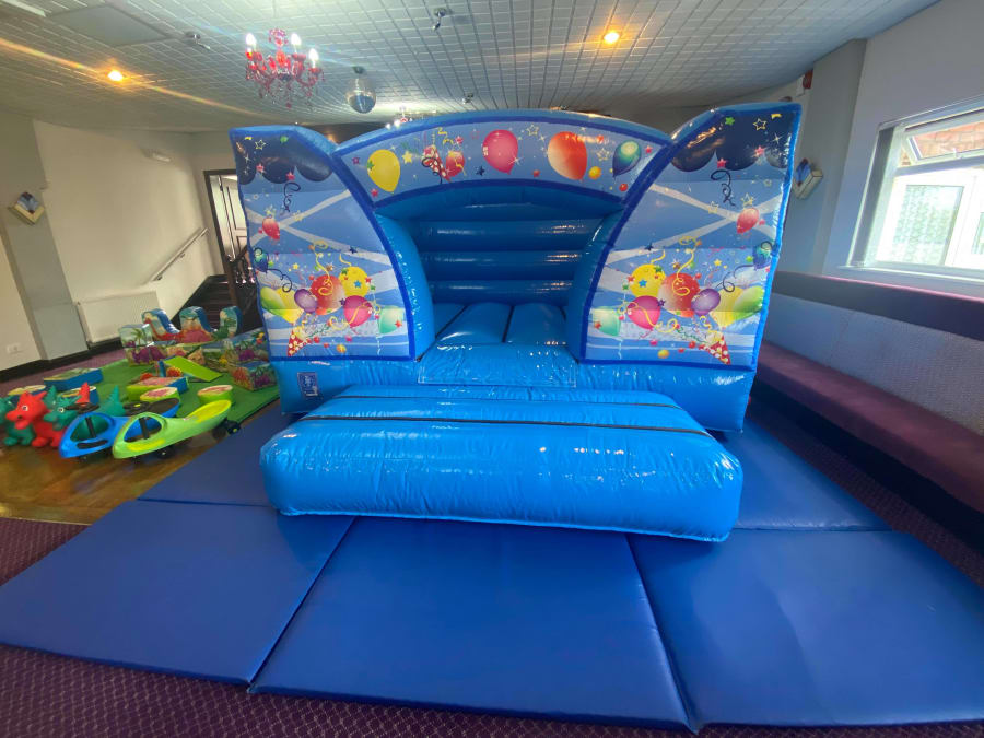 Add fun to your indoor party with our blue low height bouncy castle