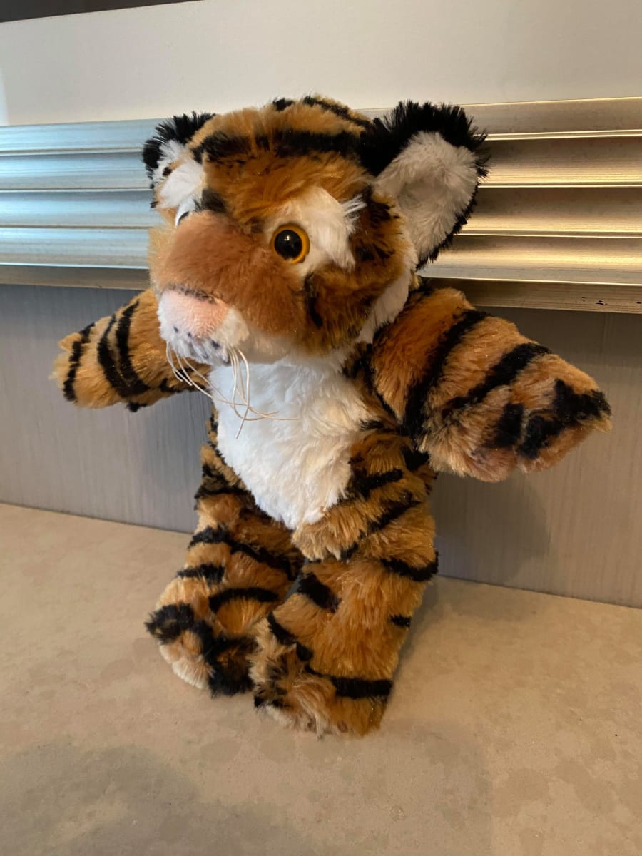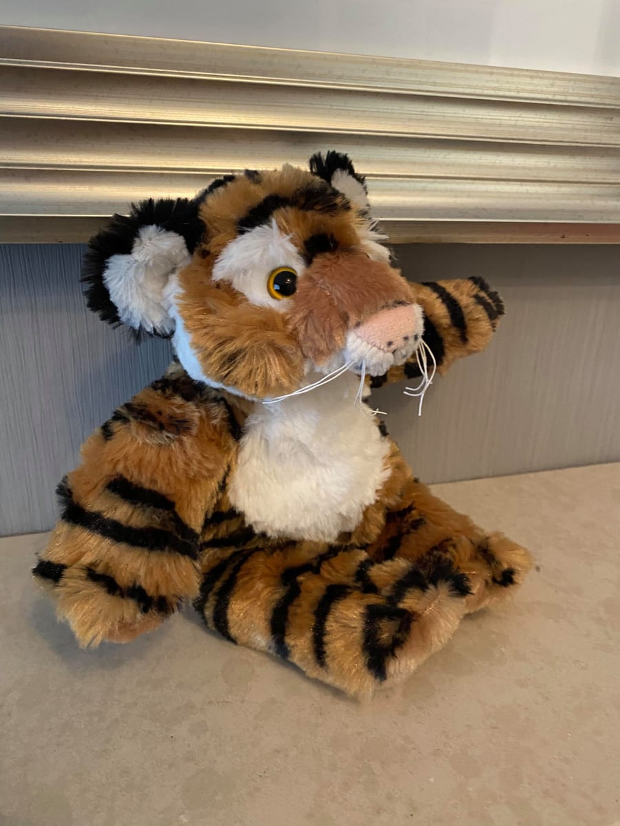 8" Tiger. Thick fluffy fur and dashing stripes make this tiger a popular choice for children and adults who love jungle animals.
