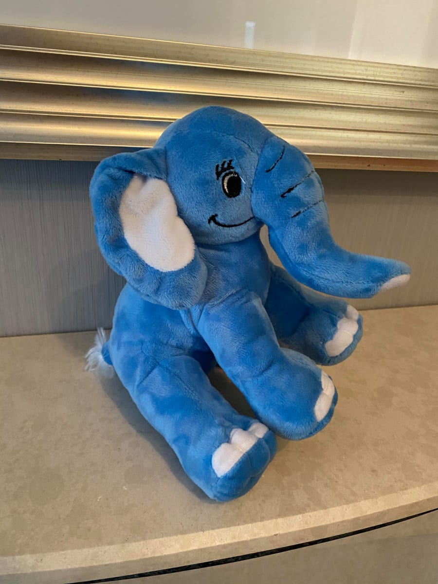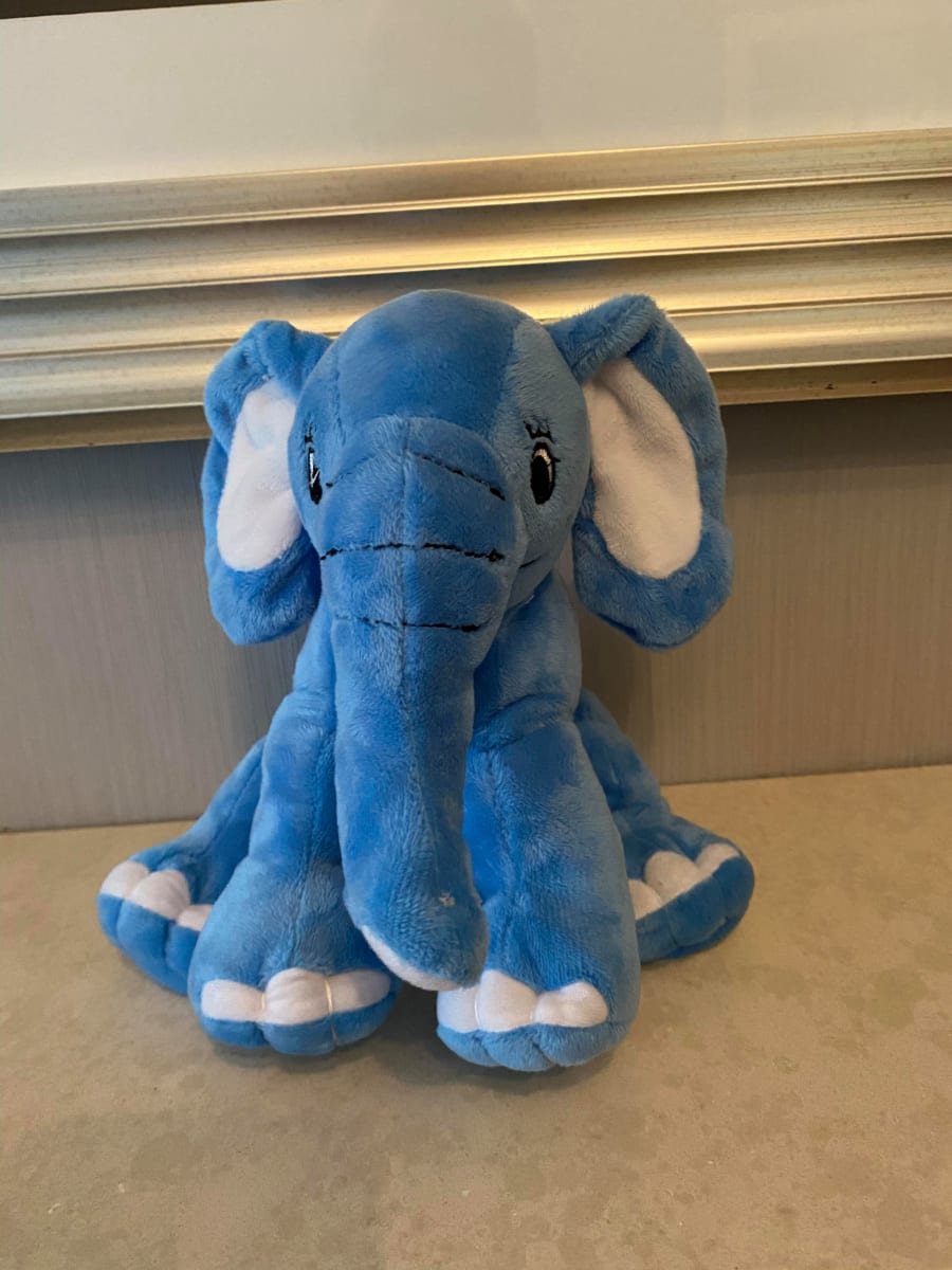 8" Blue Elephant. Bright and bold with stitched eyes and a long trunk, perfect for any animal lover.