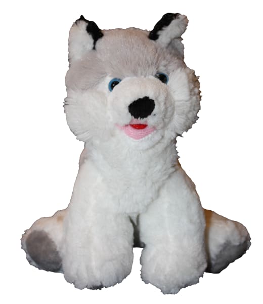 8" Husky.With its bright blue plastic eyes and cute little red tongue this husky will make the perfect companion for any dog lover out there.