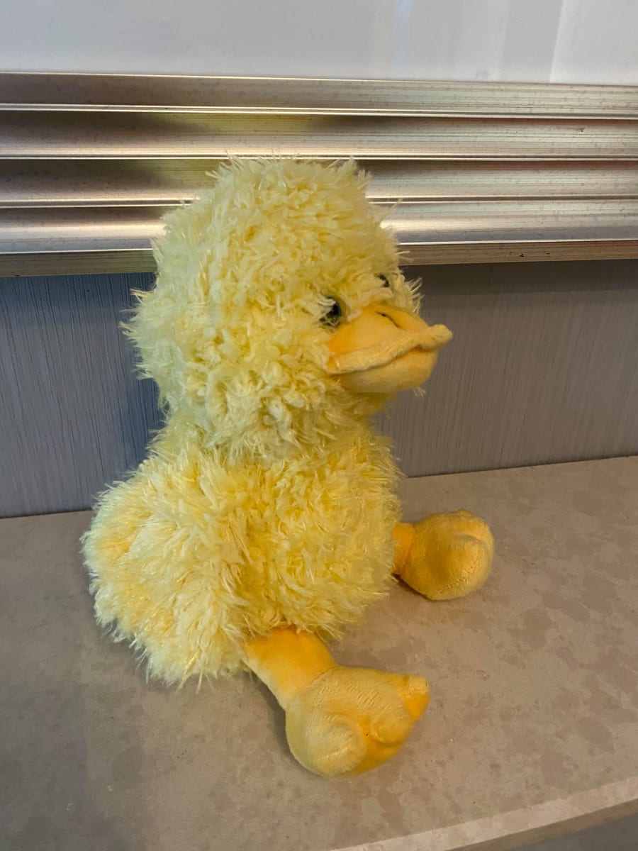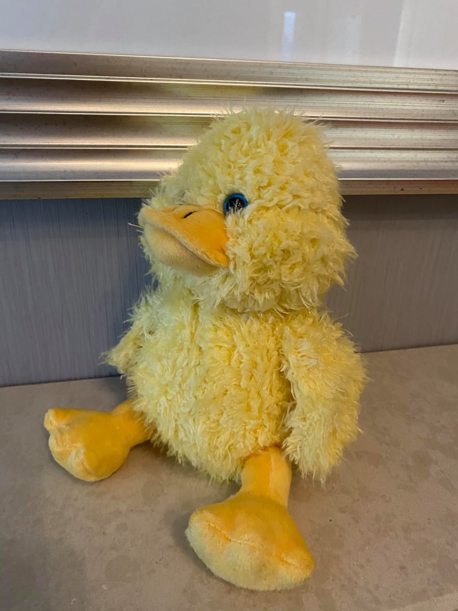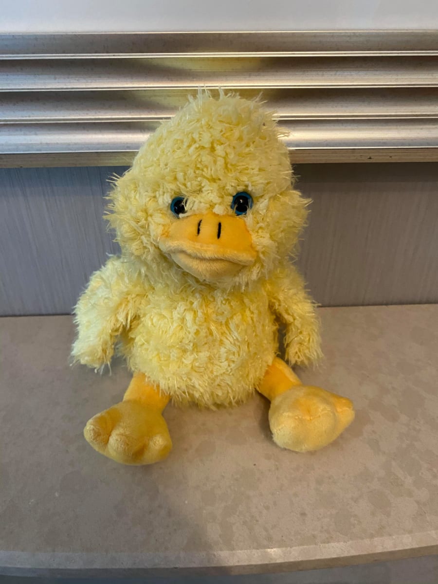 8" Duck. Cute and fluffy with bright blue eyes, this duck is an ideal Easter treat for little hands.
