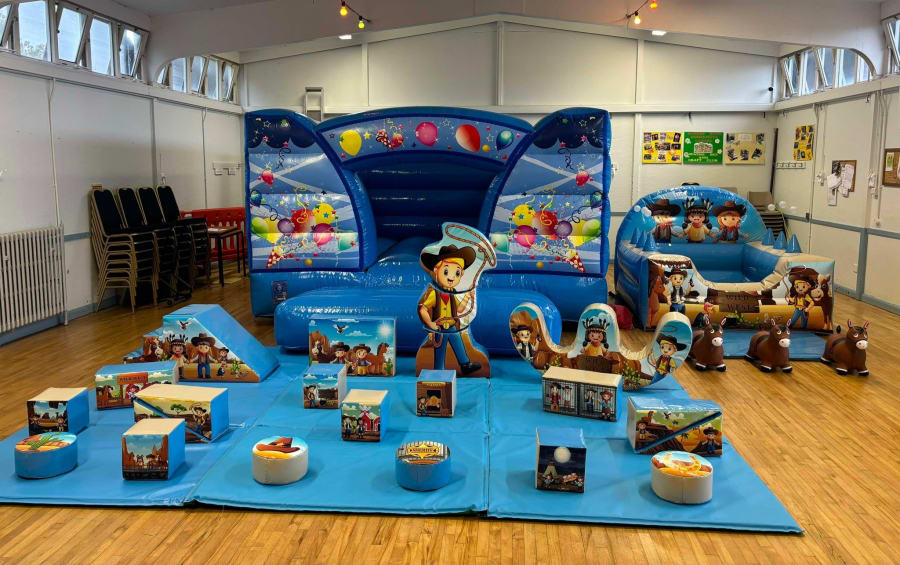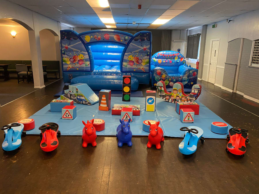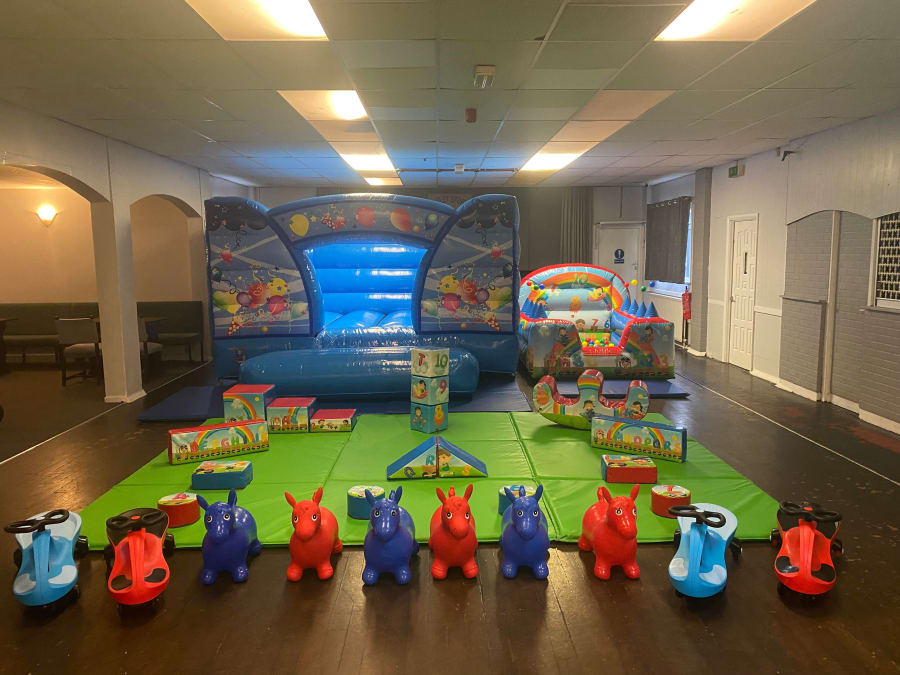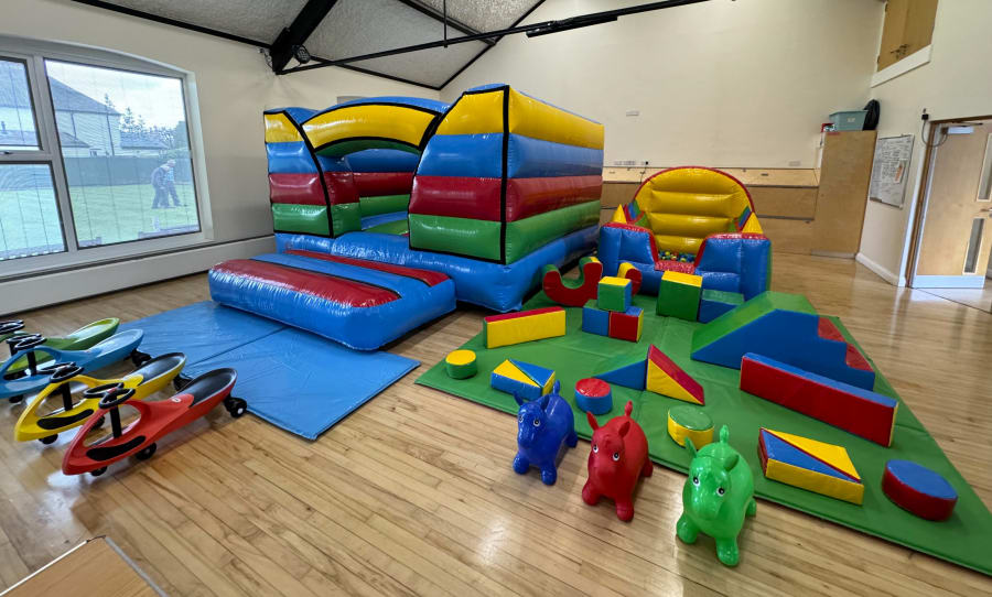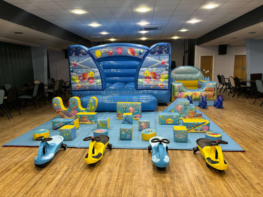 Low height bouncy castle, inflatable ball pool and soft play.