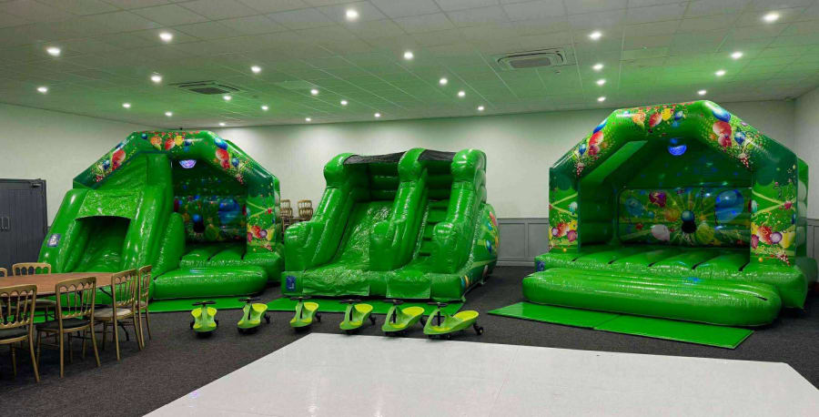 Disco bouncy castle, slide combi castle and 5ft platform slide in your choice of colour (excluding white)