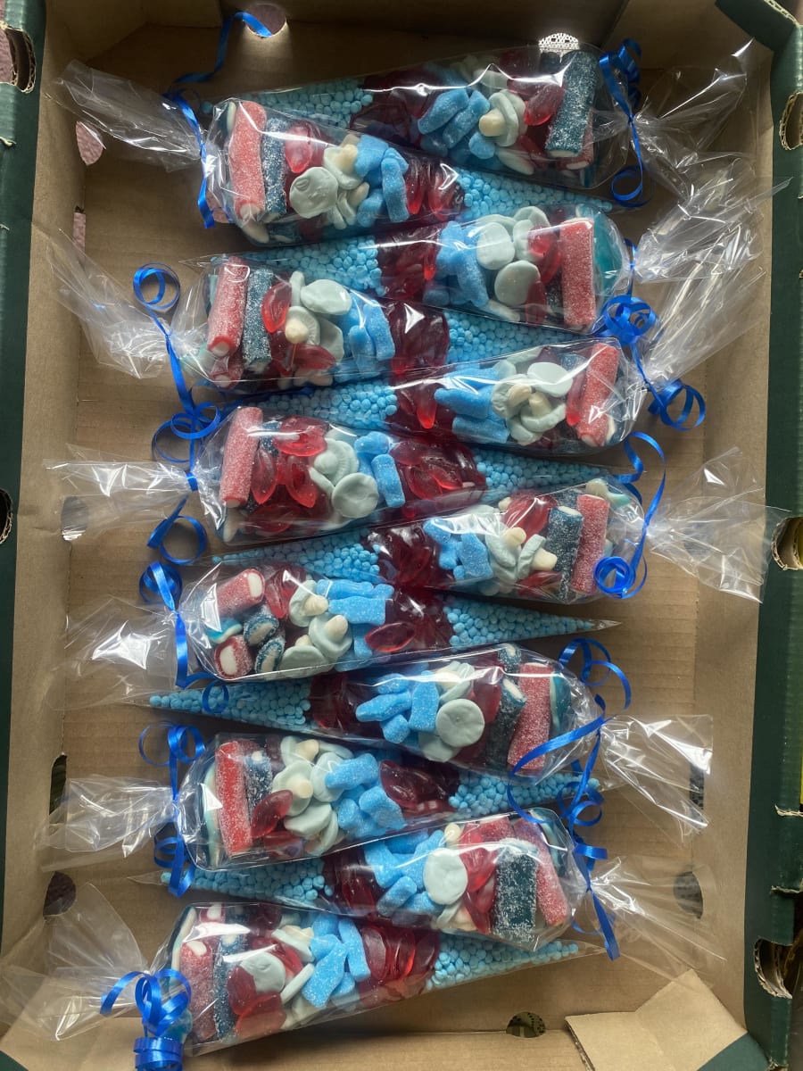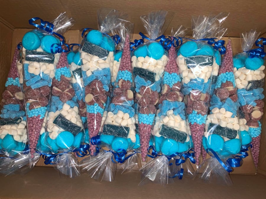 Our sweet cones are a foot long and are filled to the top with at least 6 different types of sweets to give your taste buds a real treat. The perfect party favour for your guests whatever the occasion. Whether it be a birthday party, school class gifts or even a wedding - we have you covered.